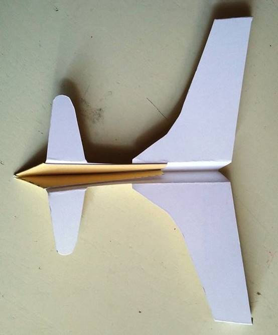 L'ala può essere ritagliata con raccordo alla fusoliera, ma nel modello proposto il raccordo non esiste.