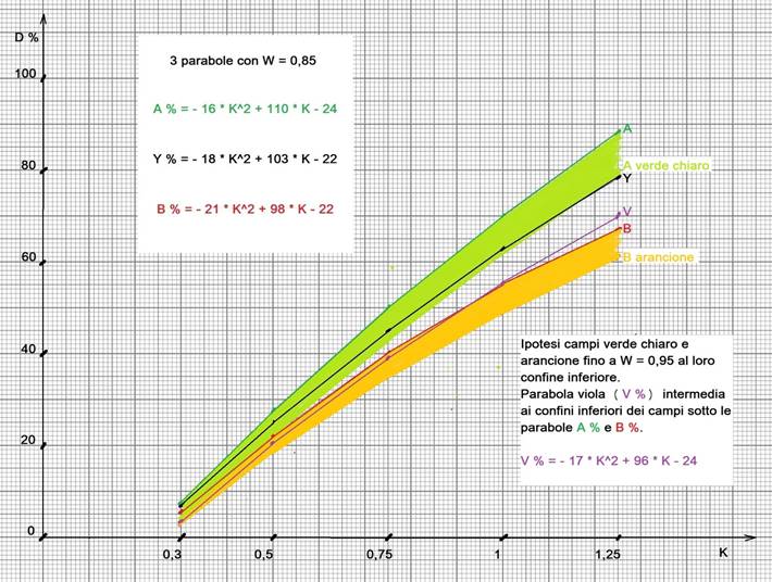 trasferimento ideale anche la curva Y% (nera media con W = 0,85) va trasferita